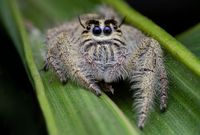 Das dabei entstandene Foto zeigt ein Weibchen der Springspinnen-Art "Hyllus diardi" und ist wie viele meiner Bilder durch "Fokus Stacking" entstanden. Mit einer Körperlänge von bis zu über 20 mm gehört diese Art zu den grössten Springspinnen weltweit.