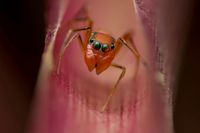 Dies ist eine winzige ameisennachahmende Springspinne, die sich im Chiang Dao Wildlife Sanctuary in Thailand im Stängel eines Blattes versteckt. Mimikry ist im Tierreich weit verbreitet und zeigt sich in den unterschiedlichsten Formen. Ich habe Dutzende verschiedene Spinnenarten beobachtet die Ameisen nachahmen. Und das tun sie aus gutem Grund. Viele Fressfeinde wie Vögel, Eidechsen oder Amphibien vermeiden es Ameisen zu jagen aufgrund deren Wehrhaftigkeit, dem schmerzhaften Biss und ihrem schlechten, sauren Geschmack. Um ihr Täuschung zu perfektionieren heben diese Spinnen sogar ein Beinpaar in die Luft, damit es wie die Antennen einer Ameise aussieht.