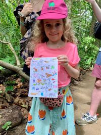 Chris, Miriam und ich waren im Cahuita-Nationalpark unterwegs und als wir an einer Familie vorbeikamen hörte ich ein kleines Mädchen auf Deutsch sagen: „Nein Papa, das ist keine Spinne, das ist ein Weberknecht. Ich hielt sofort an, drehte mich um und lachte. Wir begannen zu plaudern und das kleine Mädchen zeigte ein Sammelalbum mit den entzückendsten kleinen Skizzen von Tieren, die sie auf ihrer Wunschliste hatte. Jede mit einem Kästchen ausgestattet, um ihre Funde zu markieren.